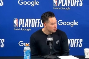 24直播网4月22日讯 NBA季后赛,马刺103-106惜败开拓者,大比分1-1战平。赛后马刺主帅米奇·约翰逊接受了媒体采访,以下为采访全文。